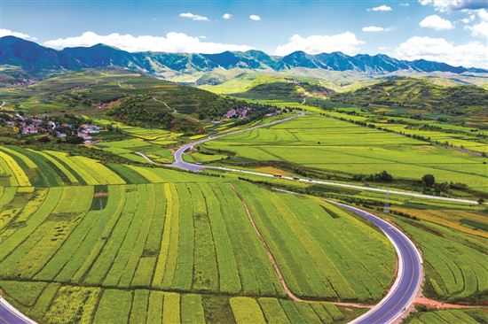 在這里,山水皆靈,無論是層巒疊嶂、云開日出,還是淳樸民俗、紅色傳奇,皆是亮眼的風(fēng)景;在這里,阡陌相通,無論是紅黑枸杞、五谷雜糧,還是葡萄美酒、蘋果梨花,正成搶手的生意。路網(wǎng)暢通處,熙熙攘攘,日益高效的城鄉(xiāng)人流物流,促進了農(nóng)業(yè)產(chǎn)業(yè)轉(zhuǎn)型升級,也讓美麗鄉(xiāng)村宜居宜業(yè)煥發(fā)生機……六盤山,曾經(jīng)記錄下歷史轉(zhuǎn)折的奇跡,而今正見證一個擺脫貧困的新時代。