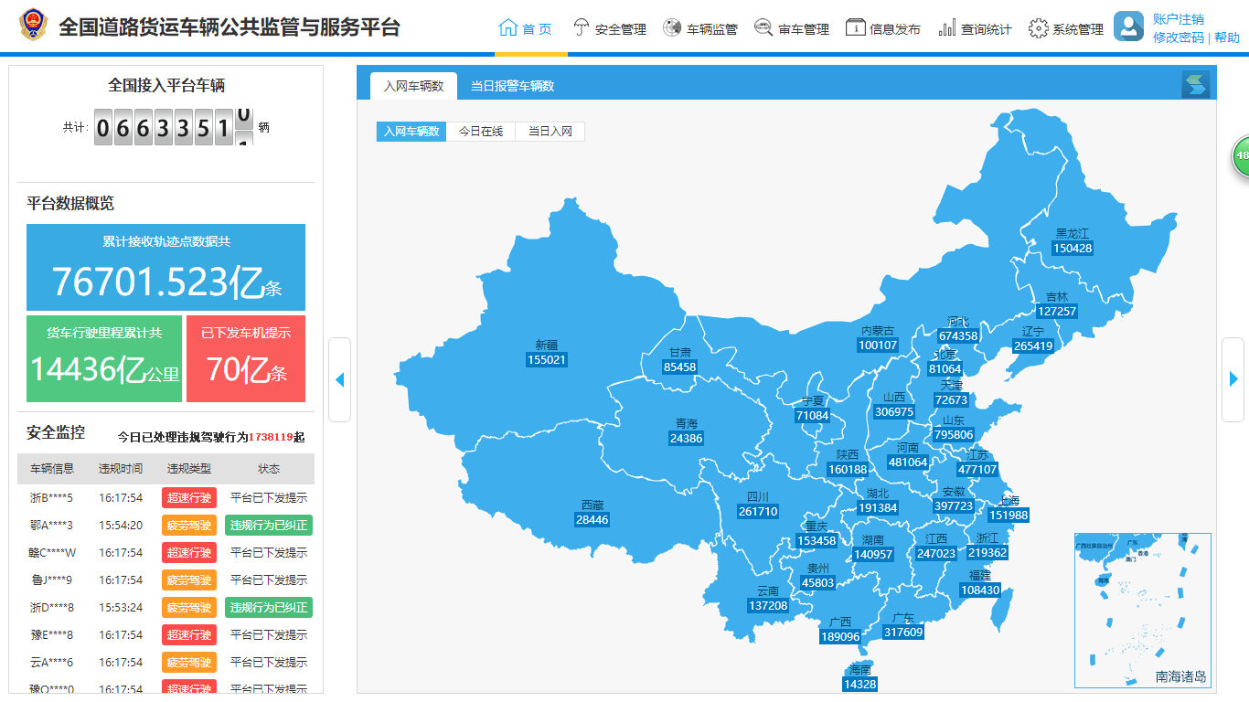 為保障貨運安全,中交興路充分運用車載終端和后臺數(shù)據(jù)分析技術(shù),實時監(jiān)測車輛動態(tài)。針對重載貨車常見的超速、疲勞駕駛問題,貨運平臺推出自動提醒、自動轉(zhuǎn)發(fā)、自動報警的自動化監(jiān)管服務(wù)。2013年上線以來,貨運平臺提供駕駛風(fēng)險提醒服務(wù)累計超過70億次,超速駕駛糾正率96%,疲勞駕駛糾正率36%,經(jīng)過精準(zhǔn)安全服務(wù)的車輛出險率下降超過10%,有效提升了重載貨車整體安全水平。